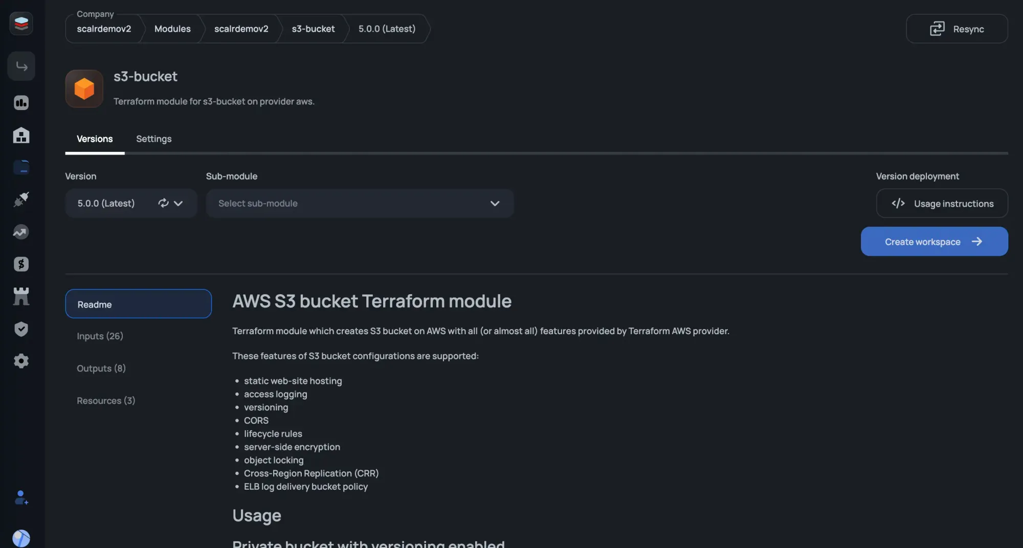 - Scalr: A comprehensive Infrastructure as Code management platform that includes a fully featured private registry. It automatically syncs private modules from your VCS (GitHub, GitLab, etc.) when your Platform team tags a release with SemVer (e.g.,